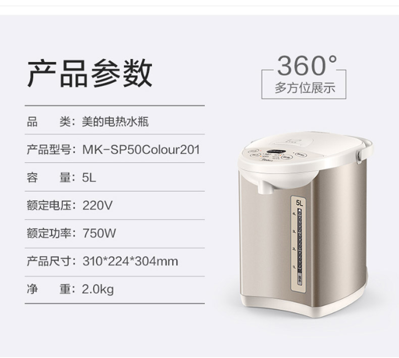 美的 Midea 电热水瓶热水壶电水壶304不锈钢冲奶壶多段温控MK-SP50Colour201