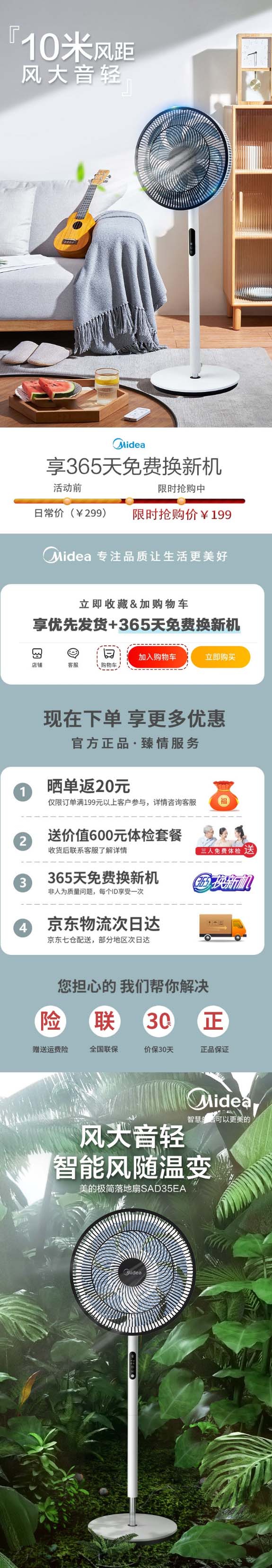 美的(Midea)电风扇 落地扇家用七叶 定时智能遥控风扇台式 SAD35EA 全新升级